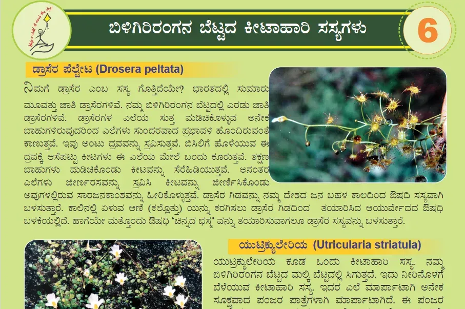 Biodiversity charts in Kannada showing the flora and fauna primarily of BR Hills, and selected examples from around the world. Designed for classrooms and libraries, they are ideal for discussion sessions.